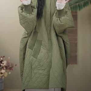 大码菱格羽绒棉衣棉服女外套长款轻薄棉袄冬季新款宽松保暖大衣女