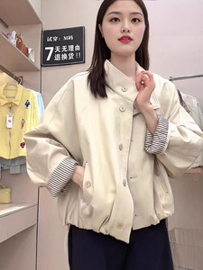 欧货英伦风立领夹克外套女2025新款宽松休闲内里条纹短款风衣上衣