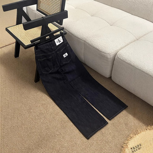 jennie同款CK家正确版丹宁经典牛仔裤复古黑白标显瘦直筒裤长裤