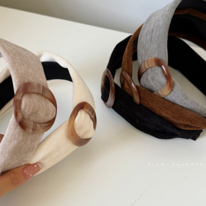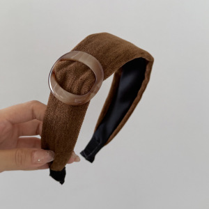 复古外戴丝绒扣子发箍女新款复古咖色系百搭发卡洗脸压发头箍