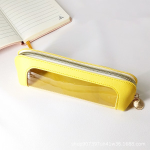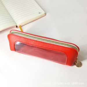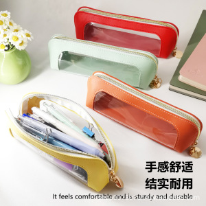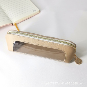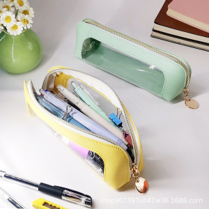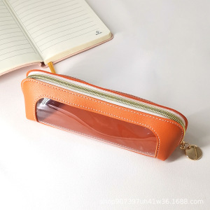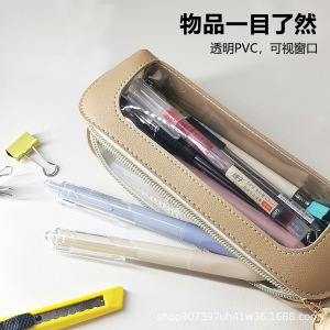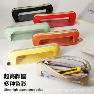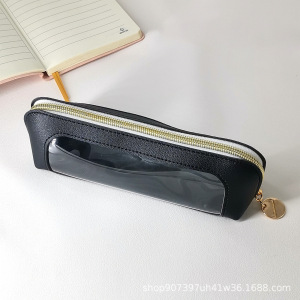 现货学生文具袋创意新款拼接pvc笔袋皮革女生化妆刷收纳包批发