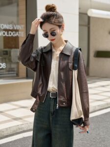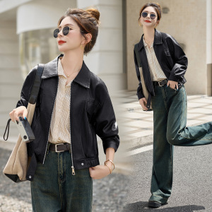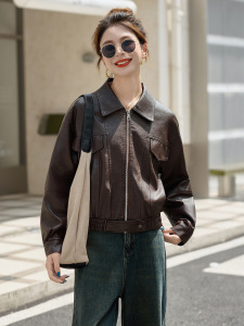 女式皮衣外套女2025秋新款复古翻领安可拉红pu皮夹克上衣WA2532
