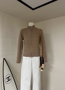 新款菱格纹毛巾针织罗纹下摆束口可爱休闲学院风针织开衫外套
