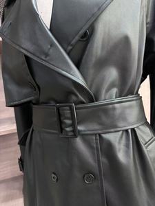现货刘亦非同款黑色皮衣外贸2025新款女装时尚翻领风衣PU仿皮外套