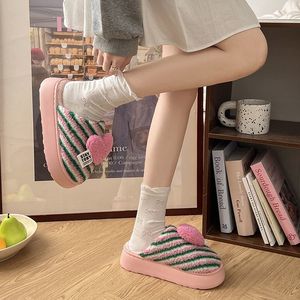 2025新款秋冬毛毛鞋居家外穿撞色条纹时尚高级个性人字棉拖鞋女