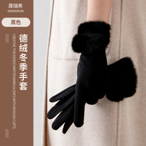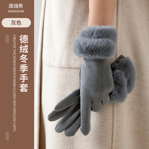 德绒冬季手套保暖女士冬季加厚清新骑行毛口防寒户外防风触屏手套