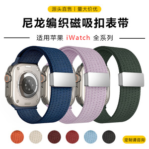 适用苹果applewatch手表带尼龙编织磁吸扣单色iwatchS10手表带