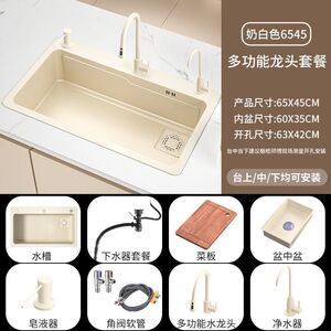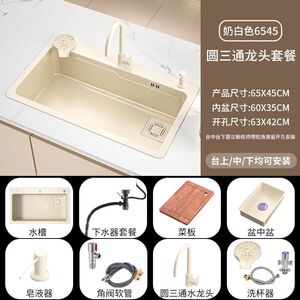 奶白色纳米抗菌【65*45cm】-圆形龙头【配洗杯器+净水龙头】