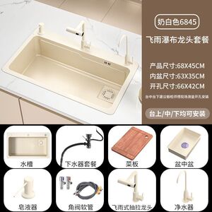 奶白色纳米抗菌【68*45cm】-瀑布抽拉龙头【配洗杯器+净水龙头】
