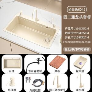 奶白色纳米抗菌【60*45cm】-圆形龙头【配洗杯器+净水龙头】