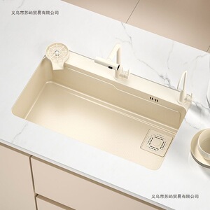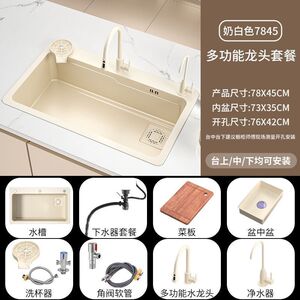 奶白色纳米抗菌【78*45cm】-瀑布抽拉龙头【配洗杯器+净水龙头】