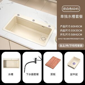 奶白色厨房洗菜盆家用台上水槽大单槽不锈钢纳米洗碗池手工台下盆