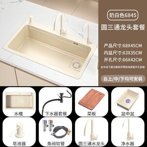 奶白色纳米抗菌【68*45cm】-圆形龙头【配洗杯器+净水龙头】