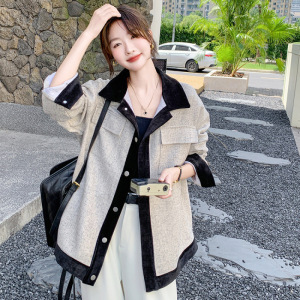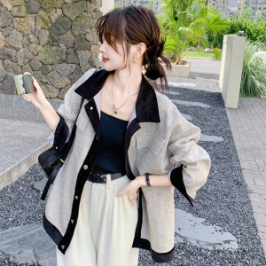 精致撞色小香风外套女春秋季新款小个子百搭拼接夹克上衣