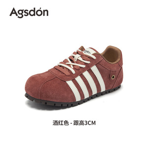 奥古狮登红色德训鞋女2025秋季新款软底舒适运动休闲鞋平底配裙子