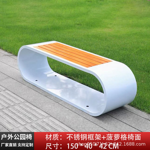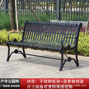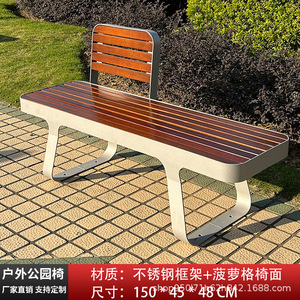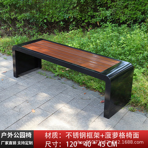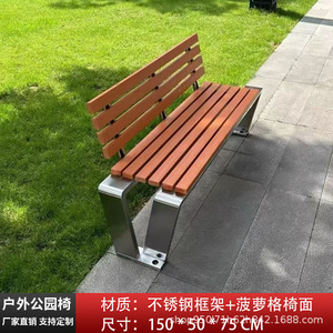 户外公园椅不锈钢长条椅室外庭院广场休闲铸铝菠萝格防腐木靠背椅