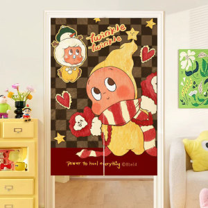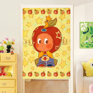 卡通星星人小清新ins风卧室门帘免打孔厨房卫生间通用遮挡隔断帘