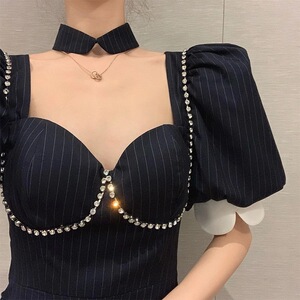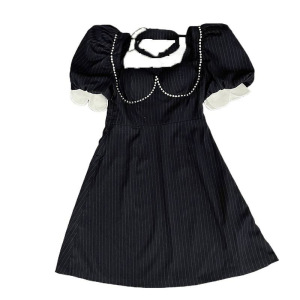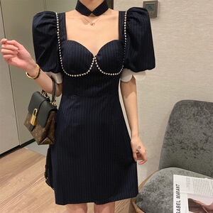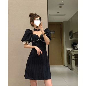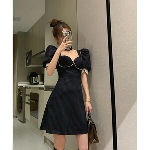 2025年夏季新款女装大码小黑裙泡泡袖裙子夏天法式方领收腰连衣裙