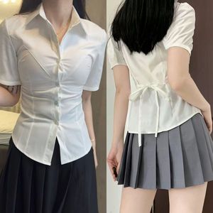 显瘦绑带款V胸收腰绑带衬衫女纯欲小众设计jk制服厂家跨境批发