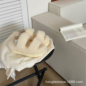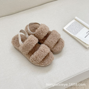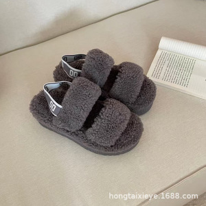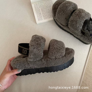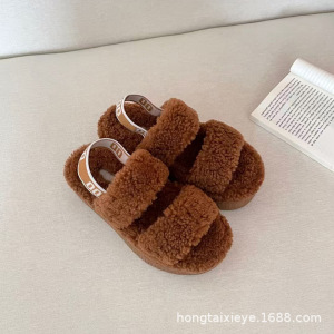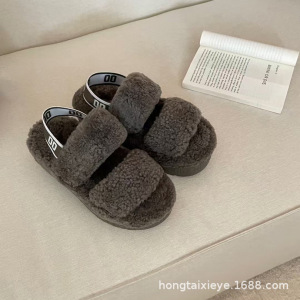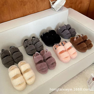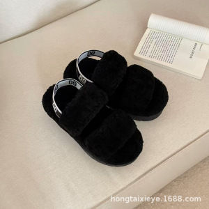 桑坡村2025冬季新款女士羊毛拖鞋松糕厚底后束带毛毛拖鞋