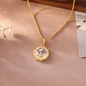 轻奢高级感珐琅荷花天然淡水珍珠圆形吊坠小众设计精致时尚锁骨链