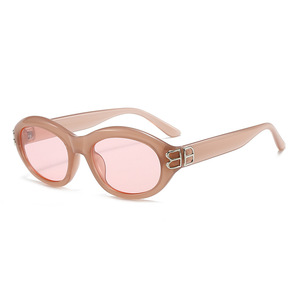 双B欧美风椭圆猫眼太阳眼镜拽姐新款潮凹造型时尚街拍黑墨镜女ins
