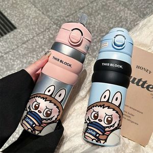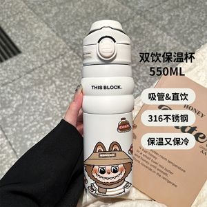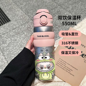 拉布布316不锈钢保温杯卡通双饮水杯大容量便携手提运动吸管杯