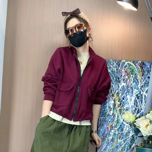 立领外套 2025秋季新款 后背字母印花拉链开衫宽松口袋上衣女077