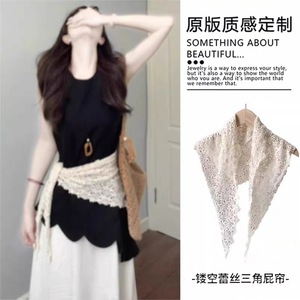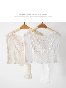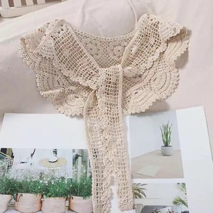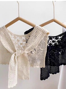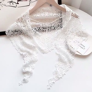 甜美气质棉线围巾镂空三角巾女百搭韩国小披肩装饰蕾丝钩花小领巾