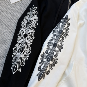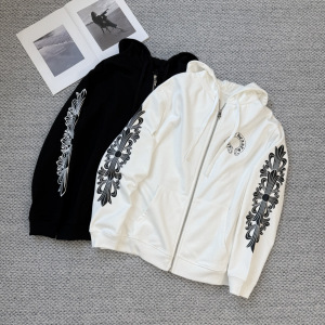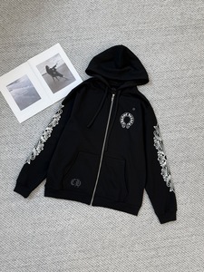 正确版25ss克罗正确版马蹄手臂印花拉链连帽卫衣外套男女代发