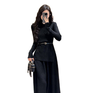 黑色上衣+裙子【套装】 【送腰带】