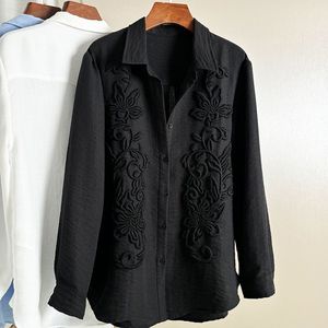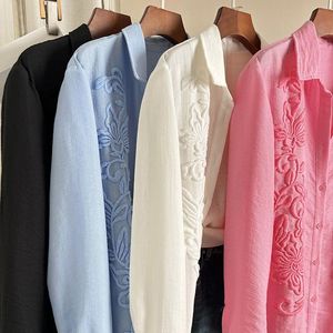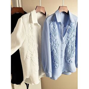 重工浮雕刺绣宽松休闲衬衫白色慵懒风中长款上衣