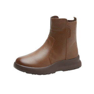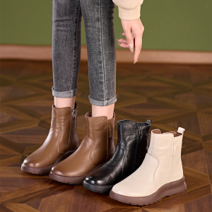 头层牛皮秋冬加绒保暖真皮马丁靴女韩版厚底羊毛内里休闲棉靴子
