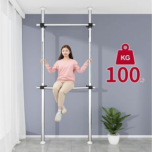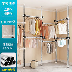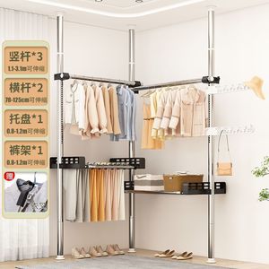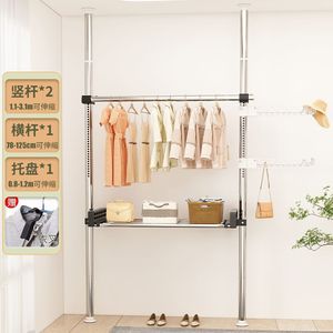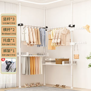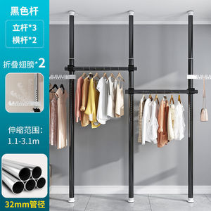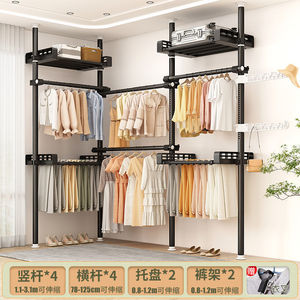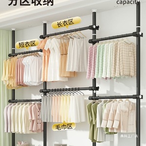 顶天立地卧室家用落地伸缩挂衣杆宿舍衣帽间简易衣帽架阳台晾衣岩