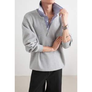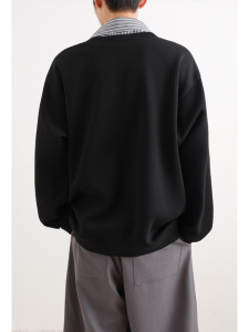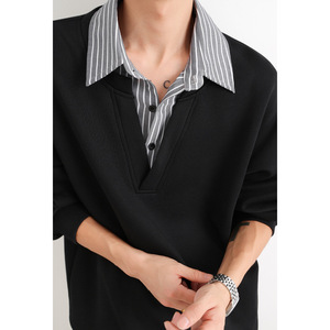 假两件美式复古POLO衫男款春秋上衣小众拼接条纹内搭长袖T恤卫衣