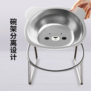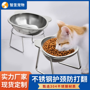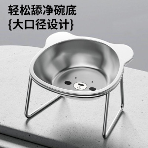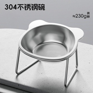 斜口高脚猫碗不锈钢碗304防黑下巴保护颈椎宠物碗食盆喝水碗