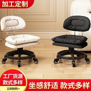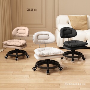 万向轮小凳子带滑轮矮凳家用换鞋凳儿童靠背椅子客厅圆凳软包板凳