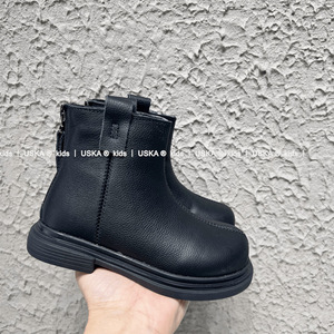 宝宝马丁靴秋冬季新款儿童真皮单靴女童小童软底加绒短靴男童鞋子