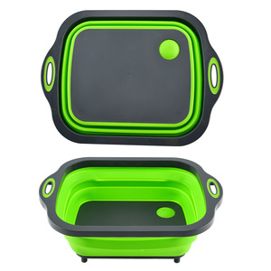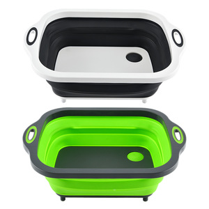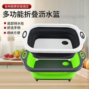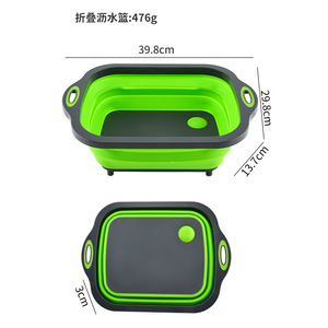 跨境热销便携折叠餐板两用切菜洗菜盆多功能折叠菜板沥水篮三合一