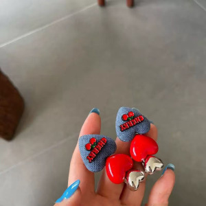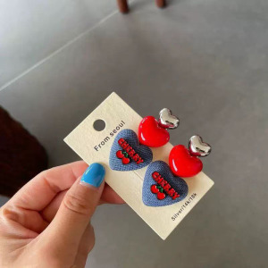 甜美樱桃牛仔布艺发夹时尚刘海夹精致碎发卡高级感侧边夹新款头饰