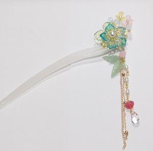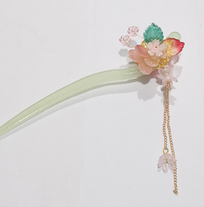 33#风铃花珍珠叶子珍珠流苏发簪-金色