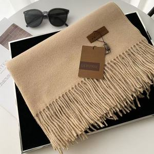纯色男女仿羊绒围巾秋冬季韩系氛围感百搭披肩围脖年会流苏红围巾
