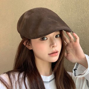韩国订单2025新款复古前进帽女秋冬韩版百搭大头围报童画家帽子日
