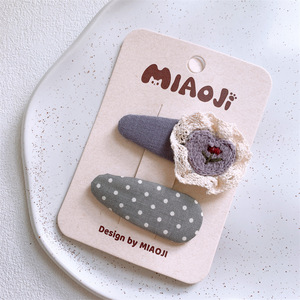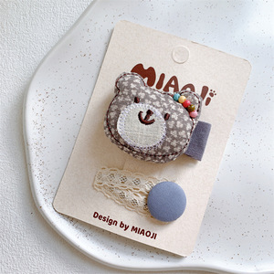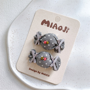 灰色系儿童可爱卡通动物发夹布艺圆点碎花水滴BB夹女童侧边刘海夹