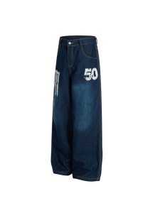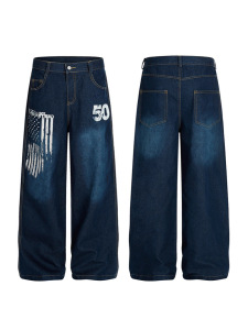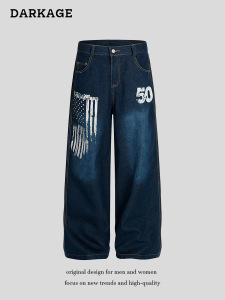 美式复古水洗做旧直筒牛仔裤男女2025年新款宽松阔腿裤拖地长裤