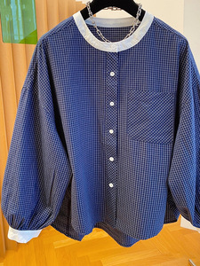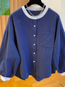 韩系减龄圆领小格子衬衫女长袖2025新款早秋装宽松气质灯笼袖上衣