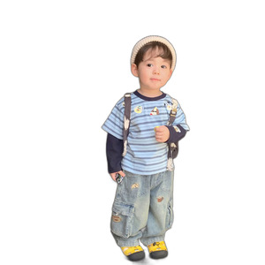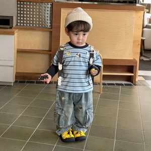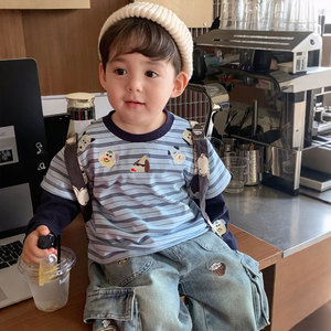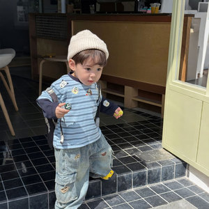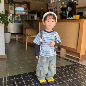 男童长袖T恤儿童春秋装2025新款时尚假两件打底衫女宝宝炸街上衣3