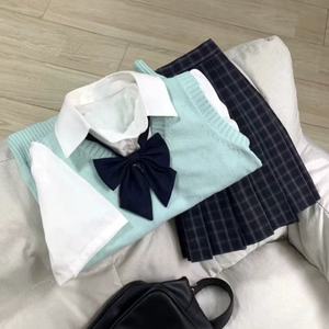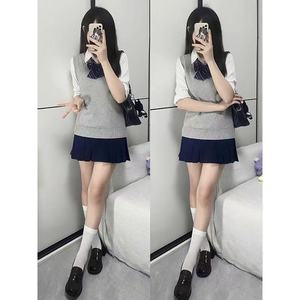 外搭叠穿马甲毛衣纯色基础V领JK制服套头背心秋冬日系学生学院风