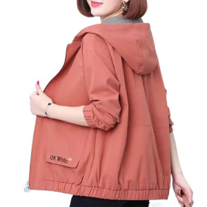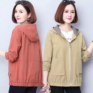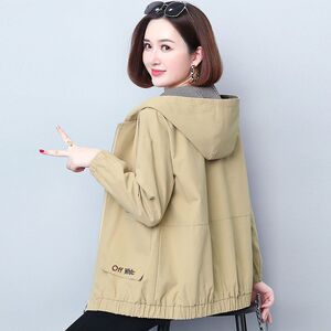 2025开春新款时尚连帽妈妈宽松大码休闲短款风衣夹克外套女小个子