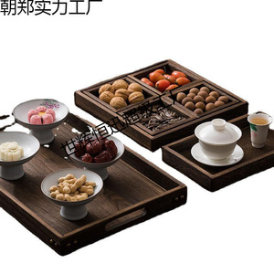 中式木质托盘下午茶水果零食小吃干果盘糕点花馍摆盘点心盘茶点盘